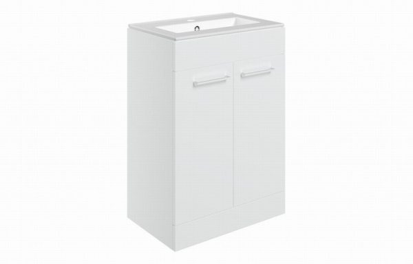 Vortek 610mm Floor Standing 2 Door Basin (1TH) & Unit – White