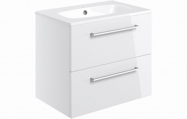 Vortek 610mm Wall Hung 2 Drawer Basin (1TH) & Unit – White Gloss