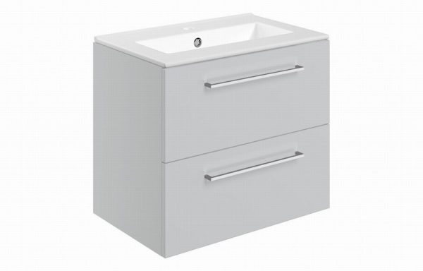 Vortek 610mm Wall Hung 2 Drawer Basin (0TH) & Unit – Grey Gloss
