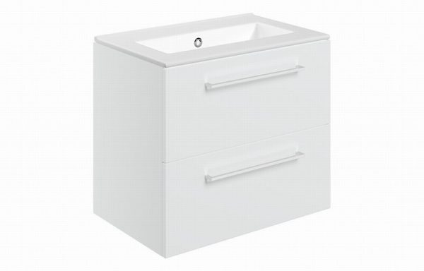 Vortek 610mm Wall Hung 2 Drawer Basin (0TH) & Unit – White Gloss