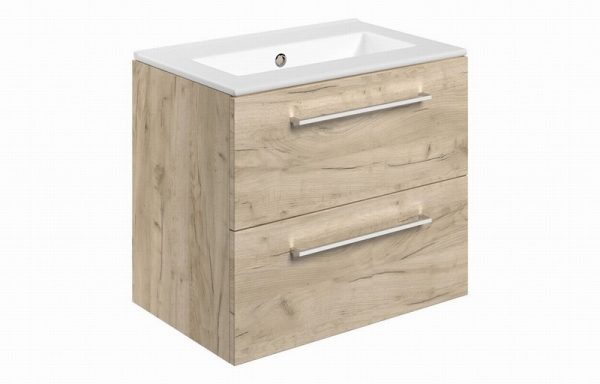 Vortek 610mm Wall Hung 2 Drawer Unit & 1TH Thin Edge Basin – Oak