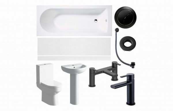Lumina 600mm Basin Unit & Close Coupled WC – White w/Black