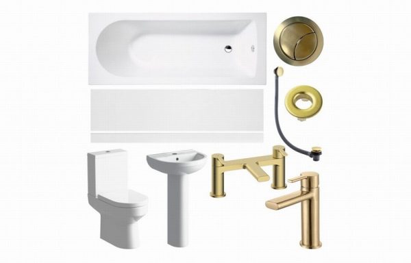 Lumina 600mm Basin Unit & Close Coupled WC – White w/Brush Brass