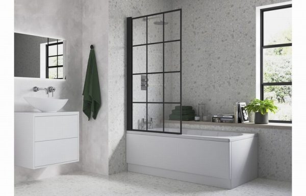 800x1400mm Square Grid Bath Screen (6mm) – Black