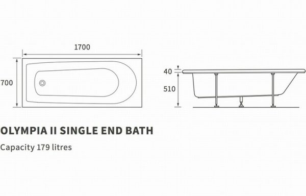 Olympia II Single End 1700x700x510mm 2TH Bath