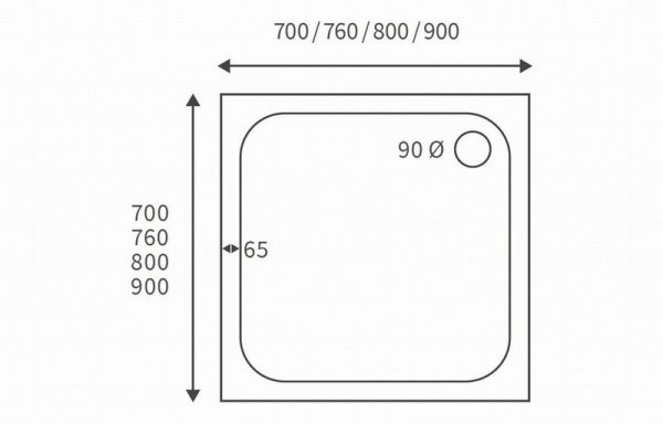 45mm Low Profile 760x760mm Square Tray & Waste – White