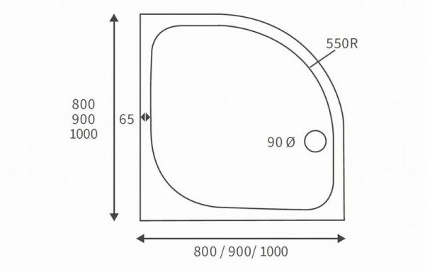 45mm Low Profile 900mm Quadrant Tray & Waste – White