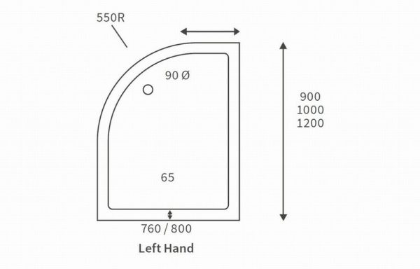 45mm Low Profile 900x760mm Offset Quadrant Tray & Waste (LH)