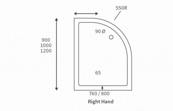 45mm Low Profile 900x760mm Offset Quadrant Tray & Waste (RH)