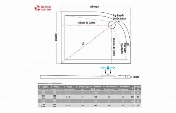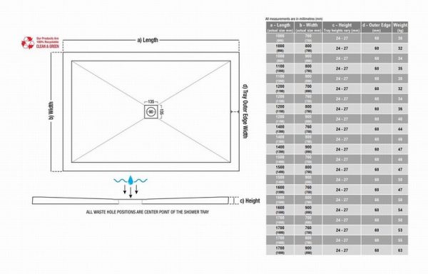 25mm Ultra-Slim 1000mm x 900mm Rectangular Tray & Waste
