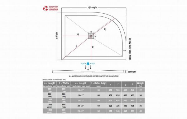25mm Ultra-Slim 1000mm x 800mm Offset Quadrant Tray & Waste (RH)