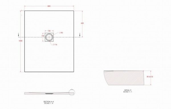 25mm 1000x800mm Slate Effect Ultra-Slim Rectangular Tray & Waste