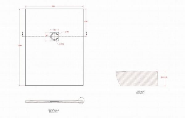 25mm 1200x900mm Slate Effect Ultra-Slim Rectangular Tray & Waste
