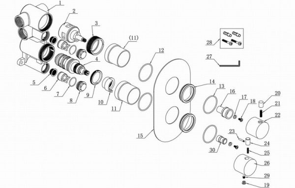 Vema Lys Concealed Two Outlet Shower Mixer w/Diverter