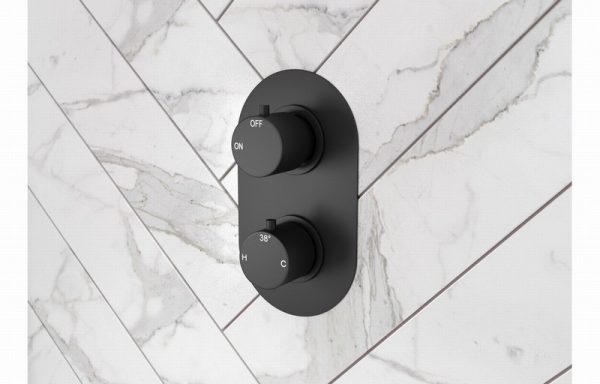 Borealis Thermostatic Two Outlet Twin Shower Valve – Matt Black