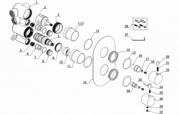 Borealis Thermostatic Three Outlet Triple Shower Valve – Chrome