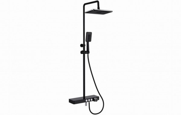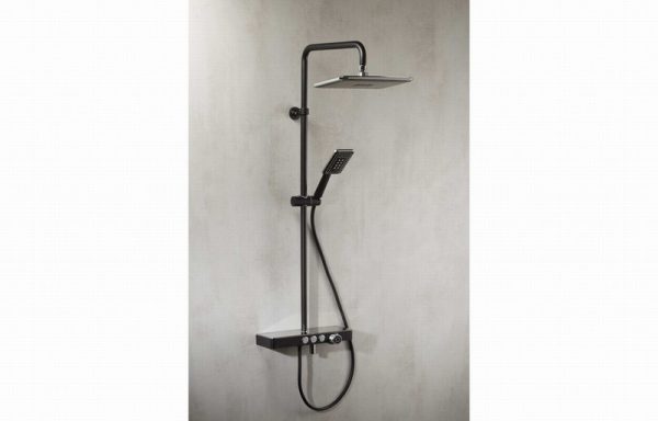 Vema Thermostatic Shower Fixed Head Riser Shelf/Foot Wash Black
