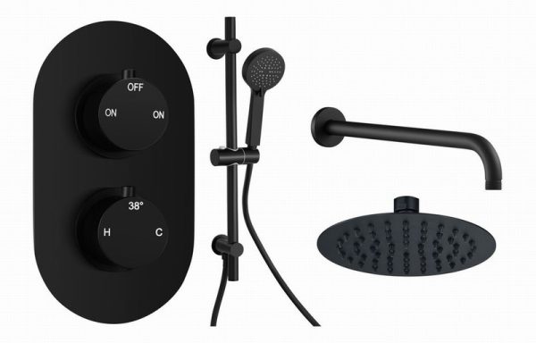 Borealis Round Shower Valve & Kit Pack 2 – Matt Black