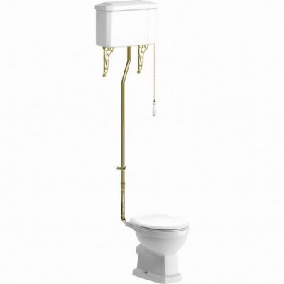 Shadwell High Level WC & White Wood Effect Seat w/Brass Finishes