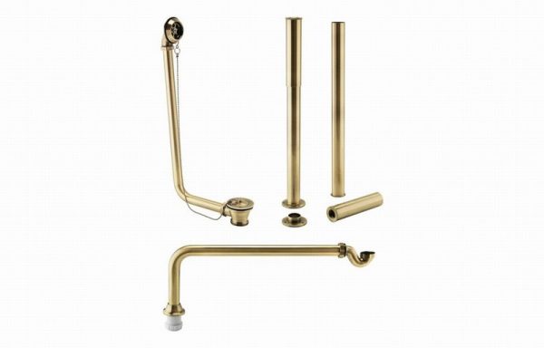 Exposed Bath Plug & Chain Waste w/Pipe Shrouds – Brushed Brass