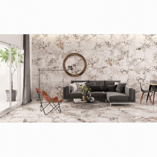 Statuario Mercury Gold Marble-Effect Wall and Floor Tile 60x60cm
