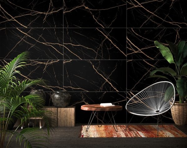 Atlantis Black and Gold Wall and Floor Tile 60x60cm